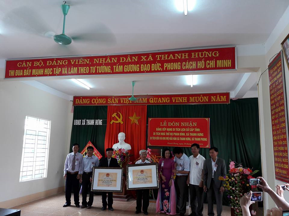 Ngày 20/11, UBND Xã Thanh Hưng, Thanh Phong (Thanh Chương) và dòng họ Phan Đình đã long trọng tổ chức lễ đón Bằng công nhận Di tích Lịch sử cấp tỉnh nhà thờ họ Phan Đình và đền, mộ Hầu Hàn